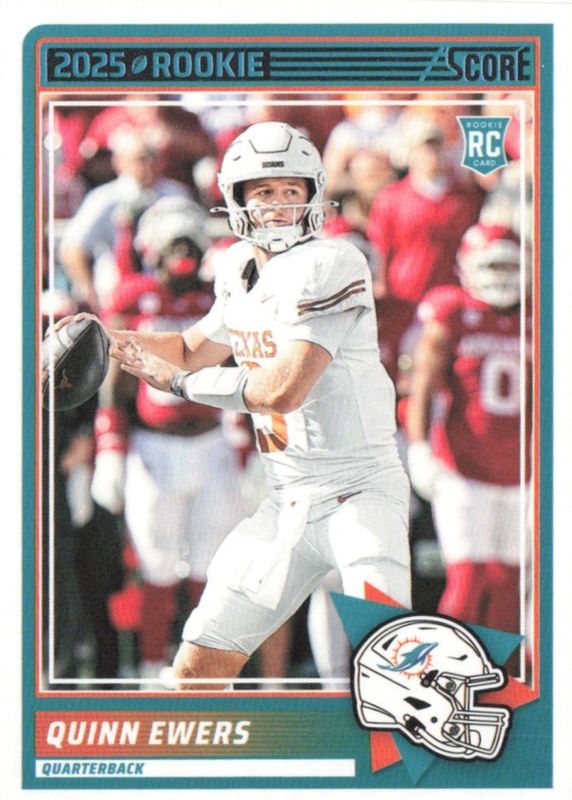 The Quinn Ewers 2025 Score #75 Base Rookie card in Raw condition has moved up $4.23 (+354%) in the last 30 days and was last sold for $5.42 .