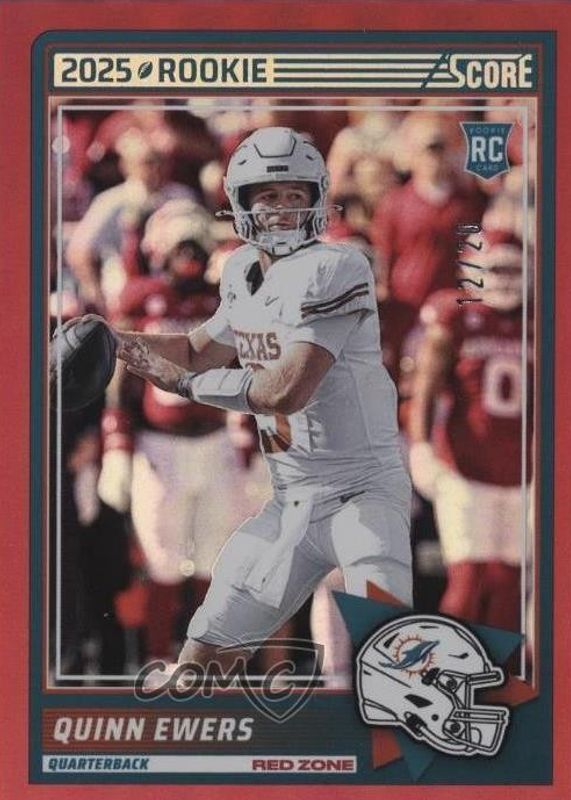 Quinn Ewers 2025 Score #75 Red Zone /20 Rookie RAW Price Guide