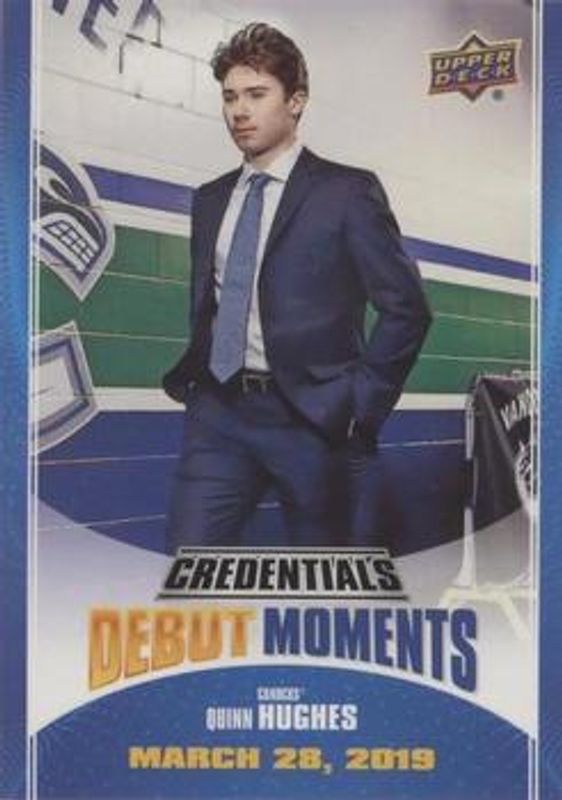 Quinn Hughes 2019 Upper Deck Credentials #DM-4 Debuts Moments Rookie RAW Price Guide