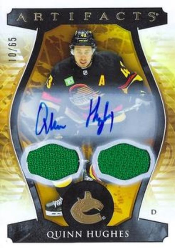 Quinn Hughes 2023 Upper Deck Artifacts #129 Auto Material - Gold /25 RAW Price Guide
