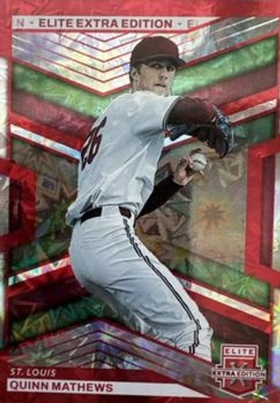 The Quinn Mathews 2023 Elite Extra Edition #34 Red /5 card is 1 of 39 Quinn Mathews' card variations in the 2023 Elite Extra Edition set being tracked by Sports Card Investor, including Base, Pink, Signatures, Status Green /499, and Signatures die-cut /399.