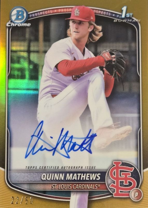 2025 Bowman Quinn Mathews Chrome Auto Gold Refractor 1st #/50 Cardinals
