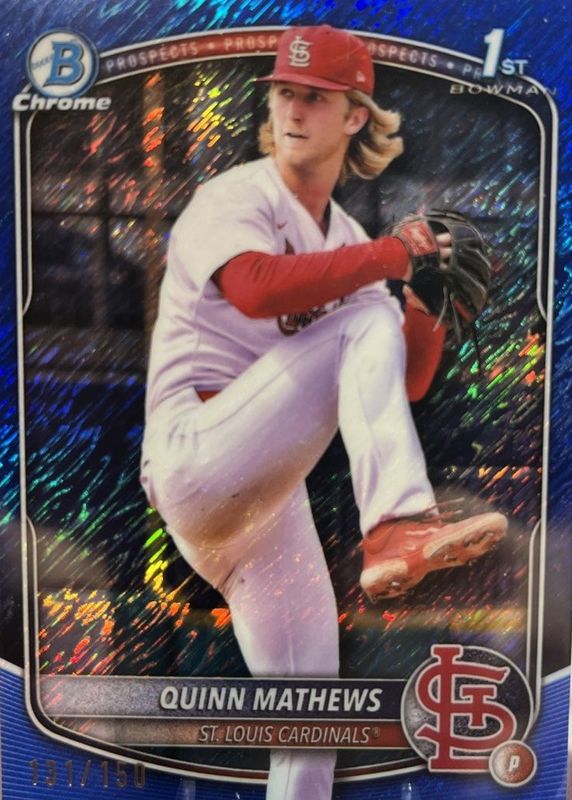 Quinn Mathews 2025 Bowman 1st Blue Shimmer 086/150 Chrome Prospects [zj25