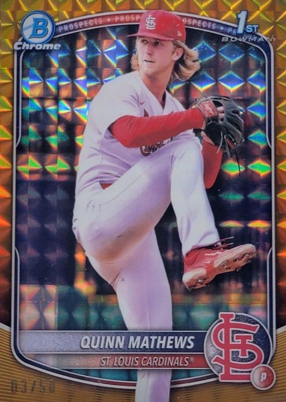 QUINN MATHEWS 2025 BOWMAN CHROME 1ST GOLD GEOMETRIC CARDINALS /50 Q4600
