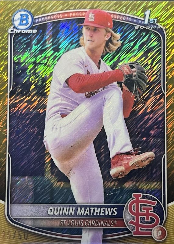 Recent Sales of Quinn Mathews 2025 Bowman #BCP-25 Chrome Prospects - Gold Shimmer Refractor /50 (1st) Raw
