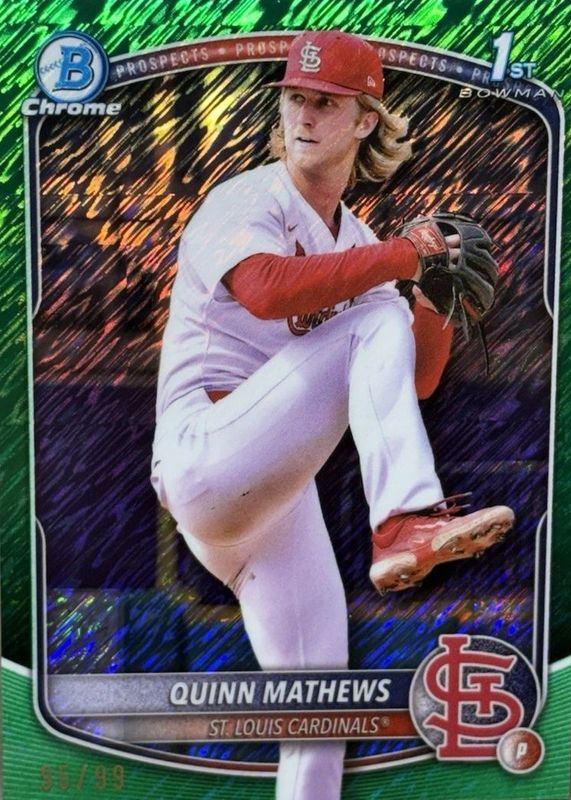 Quinn Mathews 2025 1st Bowman Chrome Green Shimmer /99 #BCP-25 Cardinals