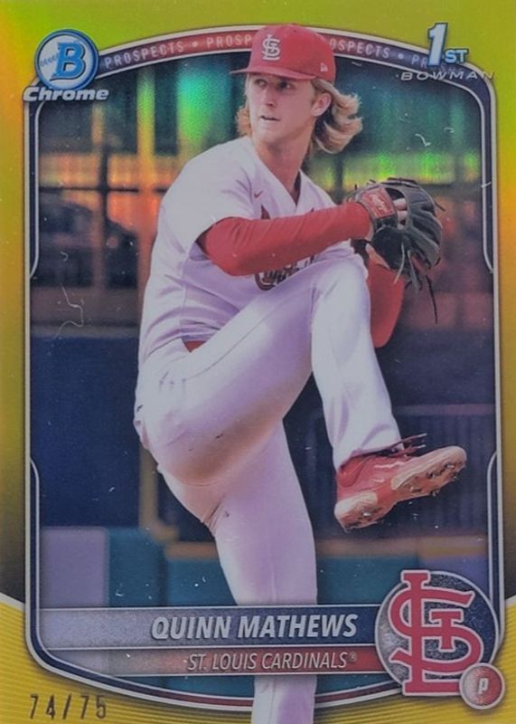 Quinn Mathews 2025 1st Bowman Chrome Prospects RC Yellow 32/75 #BCP-25 Cardinals