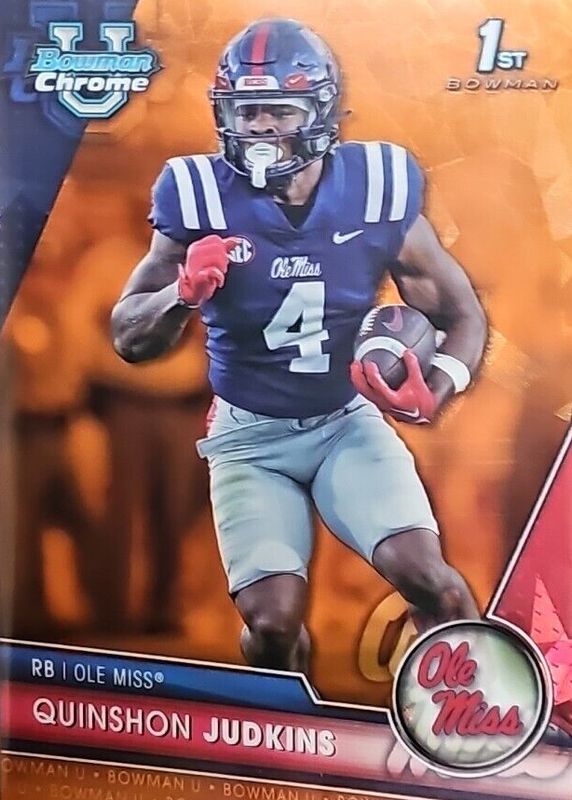 2023 Bowman Chrome U Quinshon Judkins Orange Sapphire 1st Bowman Ole Miss /25