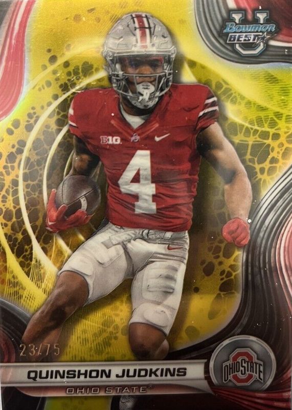 2024 Bowman University Best #74 Quinshon Judkins Yellow Refractor #/75