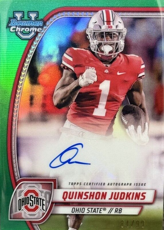 2024 Bowman University Chrome Quinshon Judkins Green Auto /99 #PA-QJU SP Buckeye