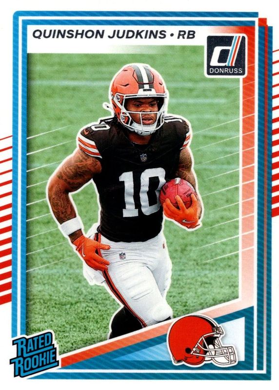 This card is 1 of 50 Quinshon Judkins' card variations in the 2025 Donruss set being tracked by Sports Card Investor, including Base, Canvas, Jersey Number (/10), No Name, and Press Proof Blue.