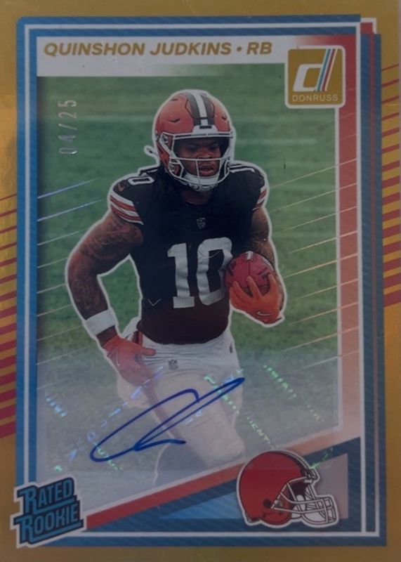 2025 Panini Donruss RATED ROOKIE AUTO GOLD /25 Quinshon Judkins #330 BROWNS SSP