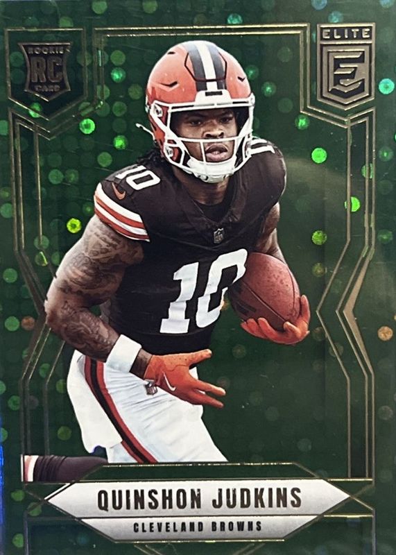 The Quinshon Judkins 2025 Elite #121 Green Disco Rookie card in Raw condition has moved down -$1.45 (-36.7%) in the last 30 days and was last sold for $2.50 .