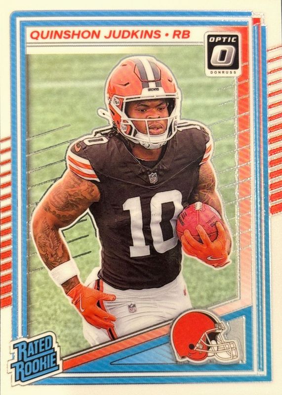 The Quinshon Judkins 2025 Optic #252 Base Rookie card in Raw condition has moved up $0.88 (+29.2%) in the last 30 days and was last sold for $3.88 .