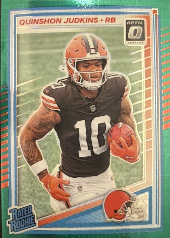 The Quinshon Judkins 2025 Optic #252 Green Hyper Rookie card in Raw condition has moved down -$0.26 (-20.8%) in the last 30 days and was last sold for $0.99 .