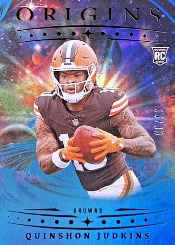 This card is 1 of 44 Quinshon Judkins' card variations in the 2025 Origins set being tracked by Sports Card Investor, including Base, Holo Red /299, Holo Orange /249, Red /225, and Holo Blue /199.