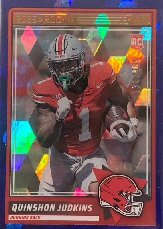 The Quinshon Judkins 2025 Score #38 Cubic /185 Rookie card in Raw condition has not changed in price in the last 30 days and was last sold for $7.99 .