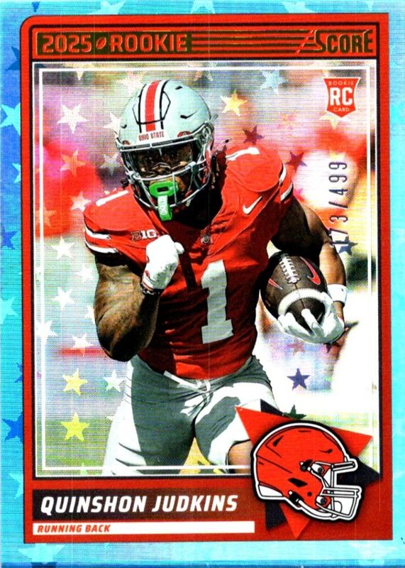 Quinshon Judkins 2025 Score Blue Stars Holo /499 Cleveland Browns Rookie RC #38