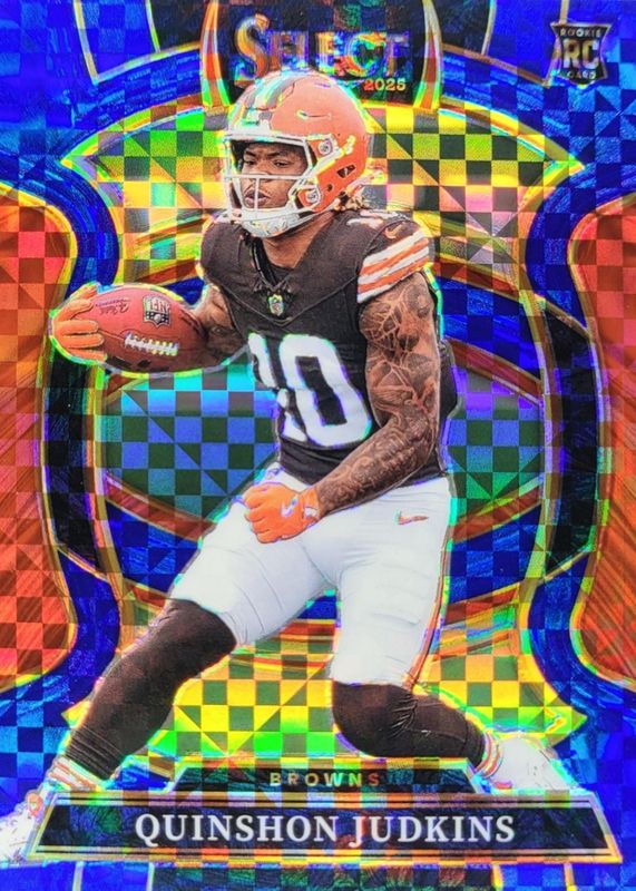 This card is 1 of 163 Quinshon Judkins' card variations in the 2025 Select set being tracked by Sports Card Investor, including Concourse, Suite Level, Concourse Black & Blue Shock, Concourse Black & Gold Shock, and Concourse Black & Green Shock.