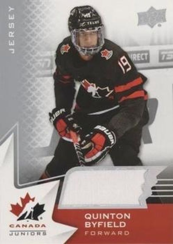 The Quinton Byfield 2020 Upper Deck Team Canada Juniors #37 Jerseys card is 1 of 47 Quinton Byfield's card variations in the 2020 Upper Deck Team Canada Juniors set being tracked by Sports Card Investor, including #37 Base, #10 Base, #118 Base, #82 Base, and #134 Base.