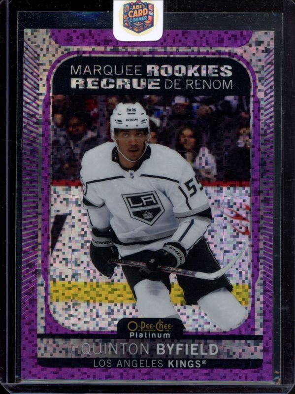 The Quinton Byfield 2021 O-Pee-Chee Platinum #202 Violet Pixels /299 Rookie card is 1 of 48 Quinton Byfield's card variations in the 2021 O-Pee-Chee Platinum set being tracked by Sports Card Investor, including Base, Black Shield (Marquee Rookies), Blue Surge, Matte Pink, and Neon Yellow Surge.