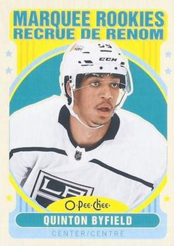 The Quinton Byfield 2021 O-Pee-Chee #507 Retro Rookie card is 1 of 23 Quinton Byfield's card variations in the 2021 O-Pee-Chee set being tracked by Sports Card Investor, including #507c Base, #507 Base, #507b Base, #507 Blue Border, and #507 Red Border.