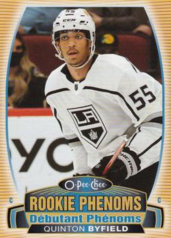 The Quinton Byfield 2021 O-Pee-Chee #RP-3 Rookie Phenoms card is 1 of 23 Quinton Byfield's card variations in the 2021 O-Pee-Chee set being tracked by Sports Card Investor, including #507c Base, #507 Base, #507b Base, #507 Blue Border, and #507 Red Border.
