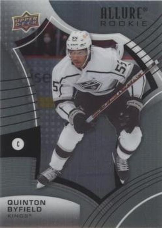 The Quinton Byfield 2021 Upper Deck Allure #150 Steel Rookie card is 1 of 54 Quinton Byfield's card variations in the 2021 Upper Deck Allure set being tracked by Sports Card Investor, including Base, 1917 Shield, 2005 Shield, Black Rainbow, and Blue China.