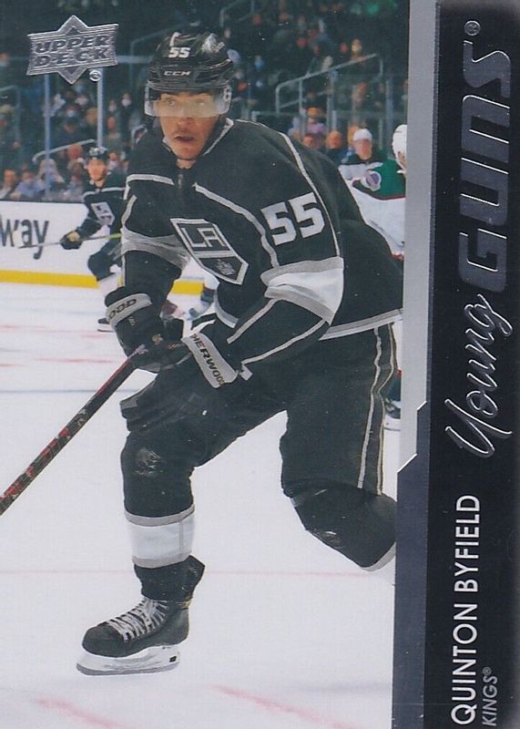 The Quinton Byfield 2021 Upper Deck #488 Young Guns Base Rookie card in Raw condition has moved up $2.09 (+31.0%) in the last 30 days and was last sold for $8.84 .