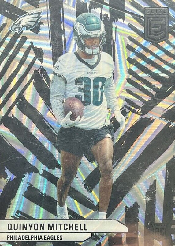 The Quinyon Mitchell 2024 Elite #147 Razzle Dazzle /(SSP) Rookie card in Raw condition has not changed in price in the last 30 days and was last sold for $25.00 .