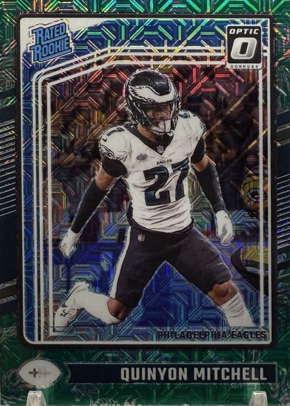 This card is 1 of 58 Quinyon Mitchell's card variations in the 2024 Optic set being tracked by Sports Card Investor, including Base, Blue Hyper, Blue Scope, Green Hyper, and Green Velocity.