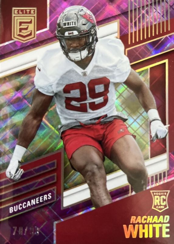 The Rachaad White 2022 Elite #114 Purple /99 Rookie card in Raw condition has not changed in price in the last 30 days and was last sold for $2.00 .