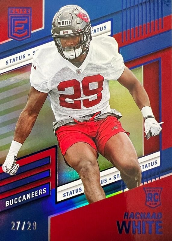 The Rachaad White 2022 Elite #114 Status (/29) Rookie card in Raw condition has not changed in price in the last 30 days and was last sold for $0.99 .
