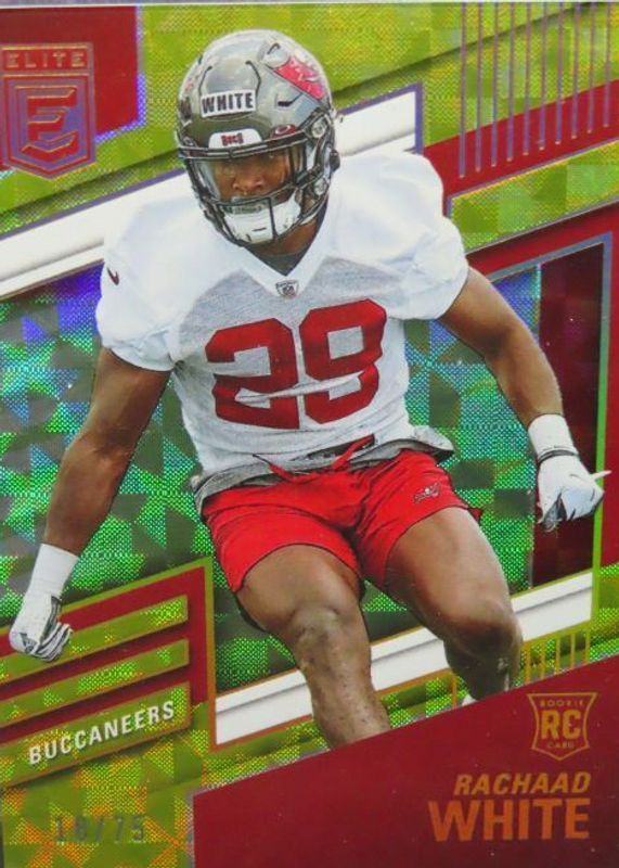 The Rachaad White 2022 Elite #114 Yellow /75 Rookie card in Raw condition has not changed in price in the last 30 days and was last sold for $4.25 .