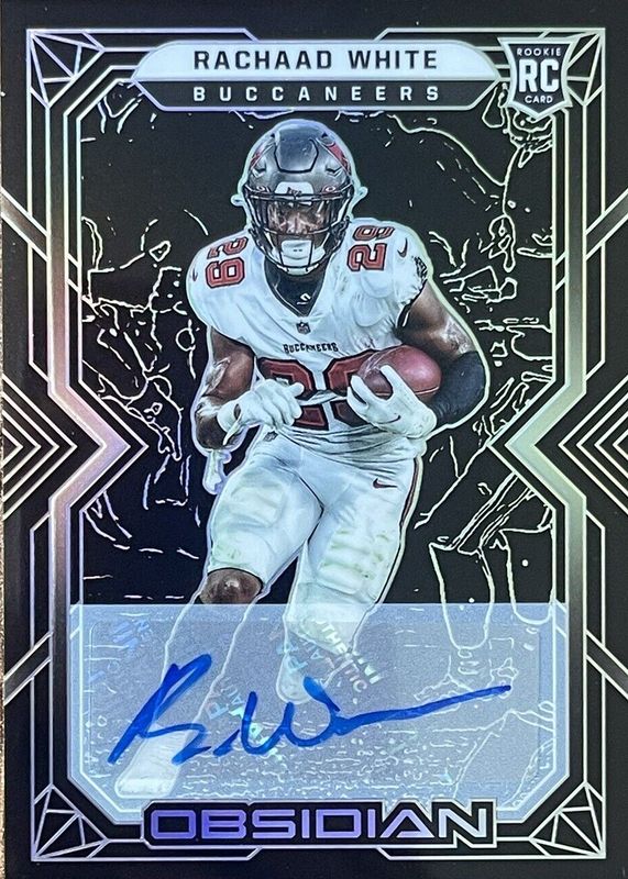 The Rachaad White 2022 Obsidian #163 Rookie Autographs (/199) card in Raw condition has not changed in price in the last 30 days and was last sold for $8.00 .
