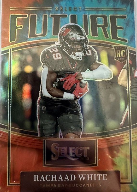 This card is 1 of 8 Rachaad White's card variations in the 2022 Select set being tracked by Sports Card Investor, including Select Future, Select Future - Silver, Select Future - Zebra /(SSP), Select Future - Gold /10, and Select Future - Green /5.