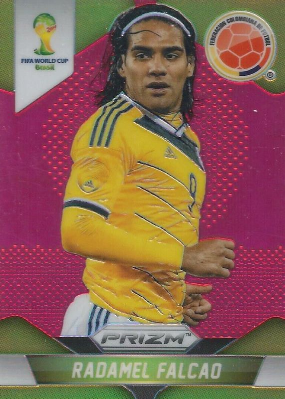 This card is 1 of 13 Radamel Falcao's card variations in the 2014 Prizm World Cup set being tracked by Sports Card Investor, including Base, Blue & Red Wave, Red White Blue Power Plaid, Silver, and Yellow & Red Pulsar.
