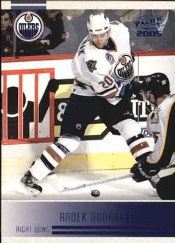 The Radek Dvorak 2004 Pacific #101 Blue /250 card is 1 of 3 Radek Dvorak's card variations in the 2004 Pacific set being tracked by Sports Card Investor, including Base, and Red.