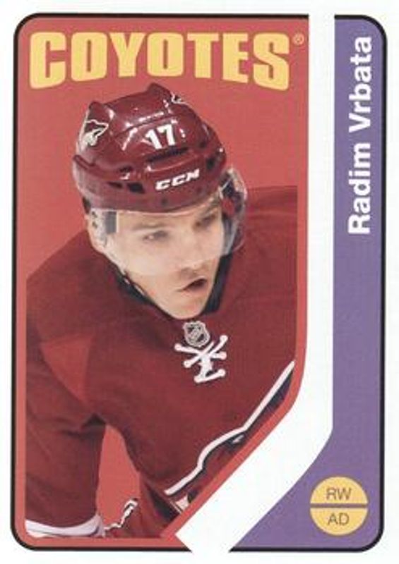 The Radim Vrbata 2014 O-Pee-Chee Retro Blank Backs card is 1 of 6 Radim Vrbata's card variations in the 2014 O-Pee-Chee set being tracked by Sports Card Investor, including Base, Rainbow, Red, Retro, and Black Rainbow /100.