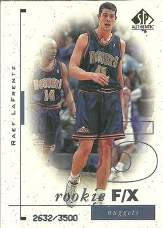 The Raef LaFrentz 1998 SP Authentic #93 Base Rookie card is 1 of 4 Raef LaFrentz's card variations in the 1998 SP Authentic set being tracked by Sports Card Investor, including NBA 2K, Sign of the Times Autographs - Silver, and First Class.
