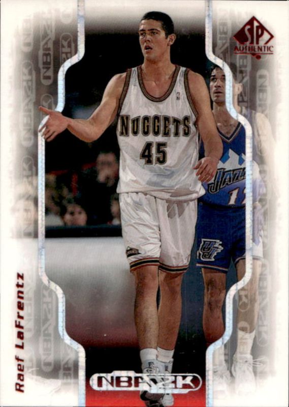 The Raef LaFrentz 1998 SP Authentic #2K3 NBA 2K Rookie card is 1 of 4 Raef LaFrentz's card variations in the 1998 SP Authentic set being tracked by Sports Card Investor, including Base, Sign of the Times Autographs - Silver, and First Class.