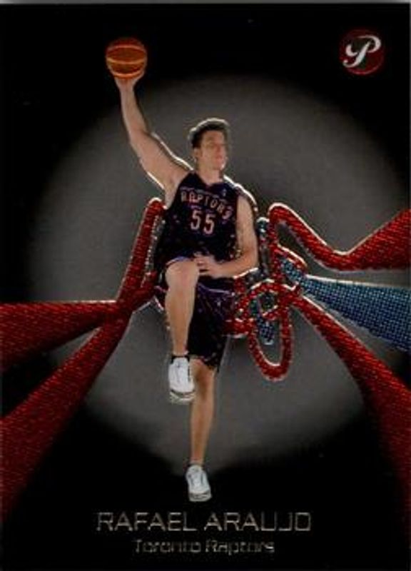 The Rafael Araujo 2004 Topps Pristine #112 Base Rookie card is 1 of 27 Rafael Araujo's card variations in the 2004 Topps Pristine set being tracked by Sports Card Investor, including #110 Base, #111 Base, #112 Refractor /599, #111 Refractor /599, and #110 Refractor /599.