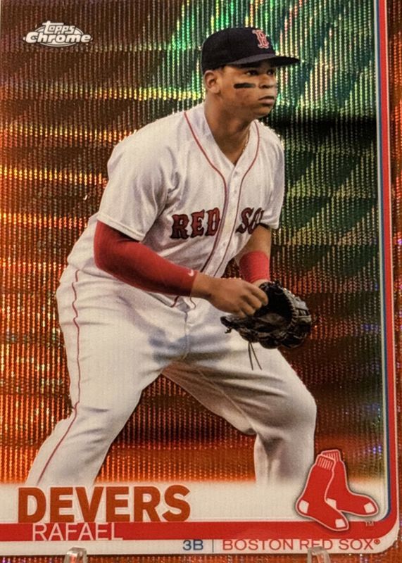 The Rafael Devers 2019 Topps Chrome #184 Orange Wave Refractor /25 card in Raw condition has not changed in price in the last 30 days and was last sold for $44.99 .