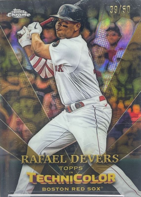 The Rafael Devers 2023 Topps Chrome #TT-14 Topps in Technicolor - Gold Refractor /50 card in Raw condition has not changed in price in the last 30 days and was last sold for $10.99 .