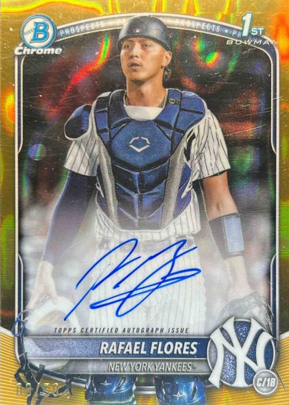 2025 Bowman Rafael Flores 1st Bowman Chrome Gold Lava Refractor Auto /50 Yankees