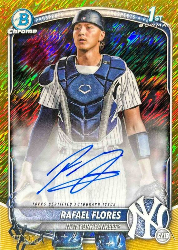 2025 Bowman 1st RAFAEL FLORES Chrome Gold Shimmer Refractor Auto /50 - Yankees