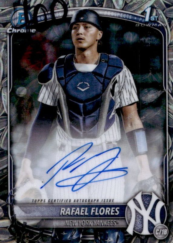 This card is 1 of 32 Rafael Flores' card variations in the 2025 Bowman set being tracked by Sports Card Investor, including Chrome Prospect Auto (1st), Chrome Prospect Auto - Refractor /499 (1st), Chrome Prospect Auto - Speckle Refractor /299 (1st), Chrome Prospect Auto - Purple Refractor /250 (1st), and Chrome Prospect Auto - Blue Refractor /150 (1st).