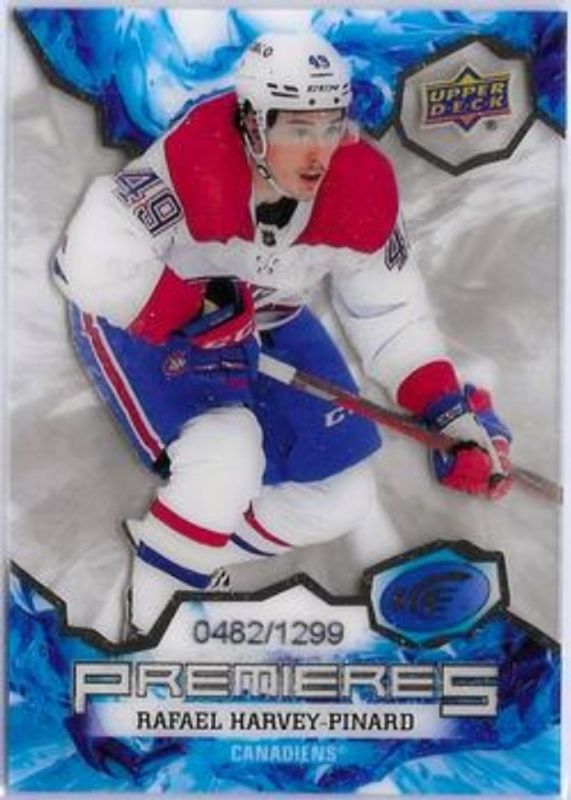 The Rafael Harvey-Pinard 2021 Upper Deck Ice #162 Base /999 Rookie card is 1 of 6 Rafael Harvey-Pinard's card variations in the 2021 Upper Deck Ice set being tracked by Sports Card Investor, including Green /799, Blue /599, Red /399, Gold /25, and Black /1.