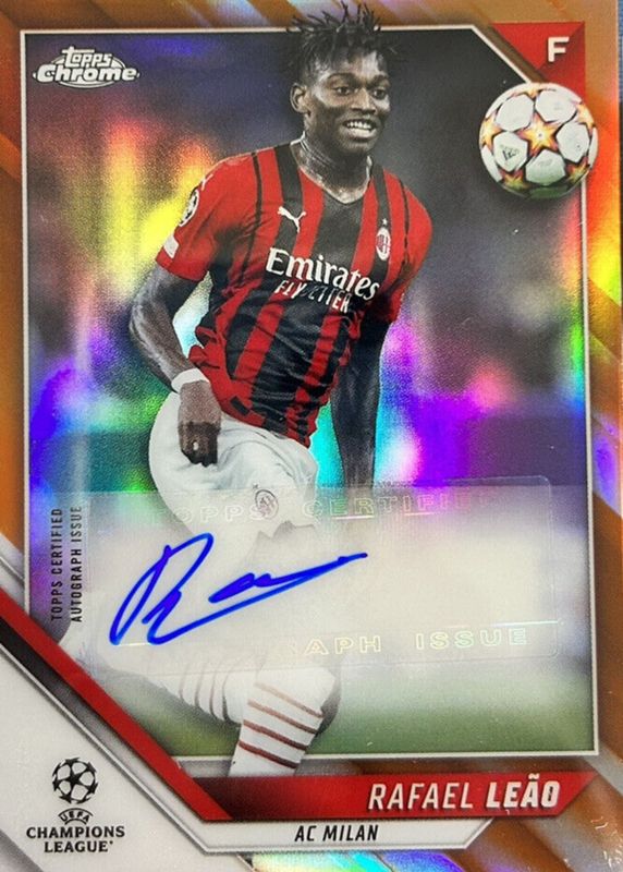 Auctions Ending Soon for Rafael Leao 2021 Topps Chrome UEFA Champions League #CA-LE Autographs - Orange Refractor /25 RAW