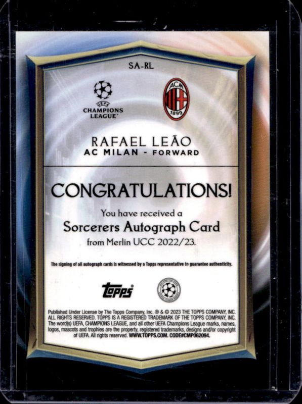 Rafael Leao 2022 Topps Merlin Chrome UEFA Club Competitions #SA-RL Sorcerers Autographs - Gold Refractor /50 RAW Price Guide